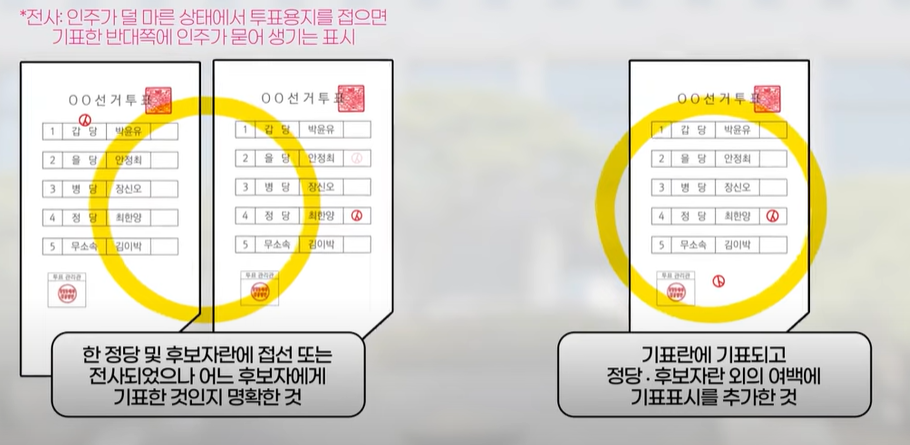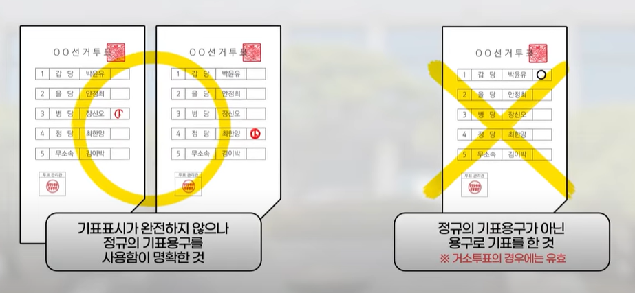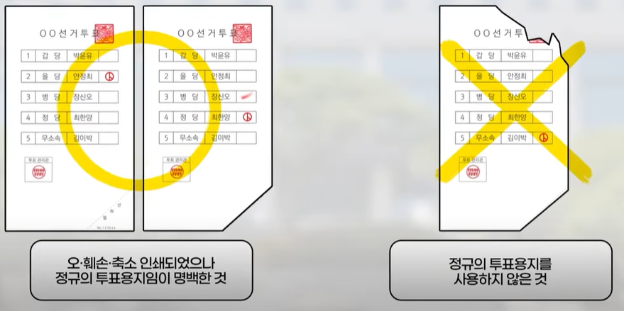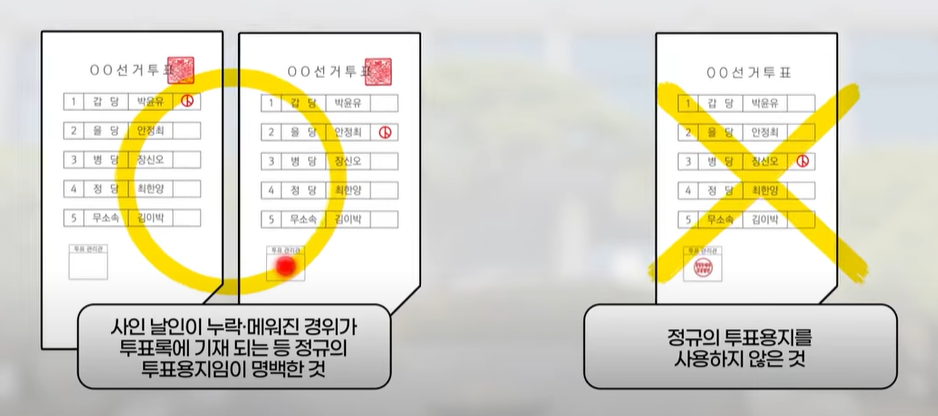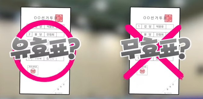 우리가 투표한 소중한 한표가 잘 전달되도록 무효표가 되지 않도록 주의가 필요합니다. 아래 투표용지를 보고 확인해 보세요.