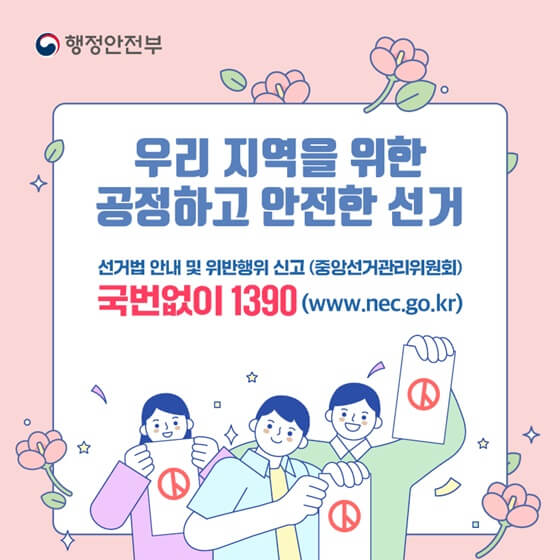 선거법규 안내 및 위반행위 신고 전국 어디서나 1390(유료)