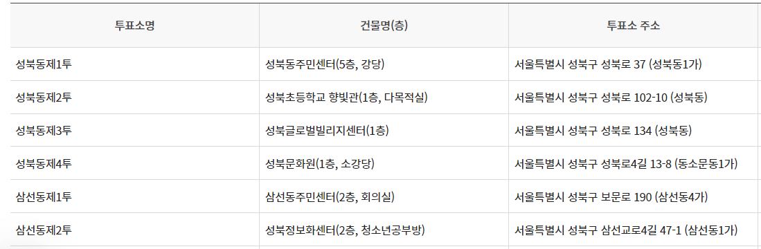 투표장소 지정된 내 투표소(선거일 투표소 찾는 방법을 참조하세요)