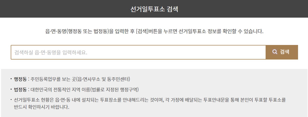 중앙선거관리위원회 선거일 투표소 검색