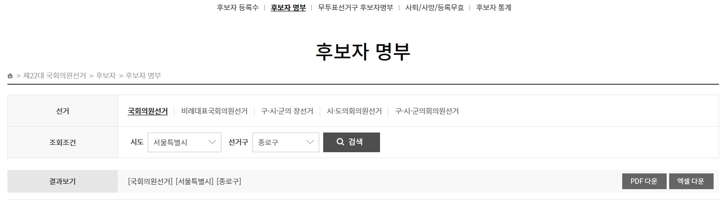제22대 국회의원선거 후보자 명부 확인하기