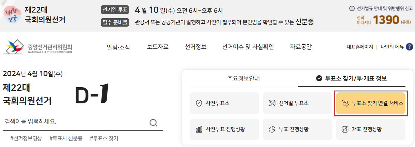중앙선거관리위원회 선거일 투표소 찾기 연결 서비스